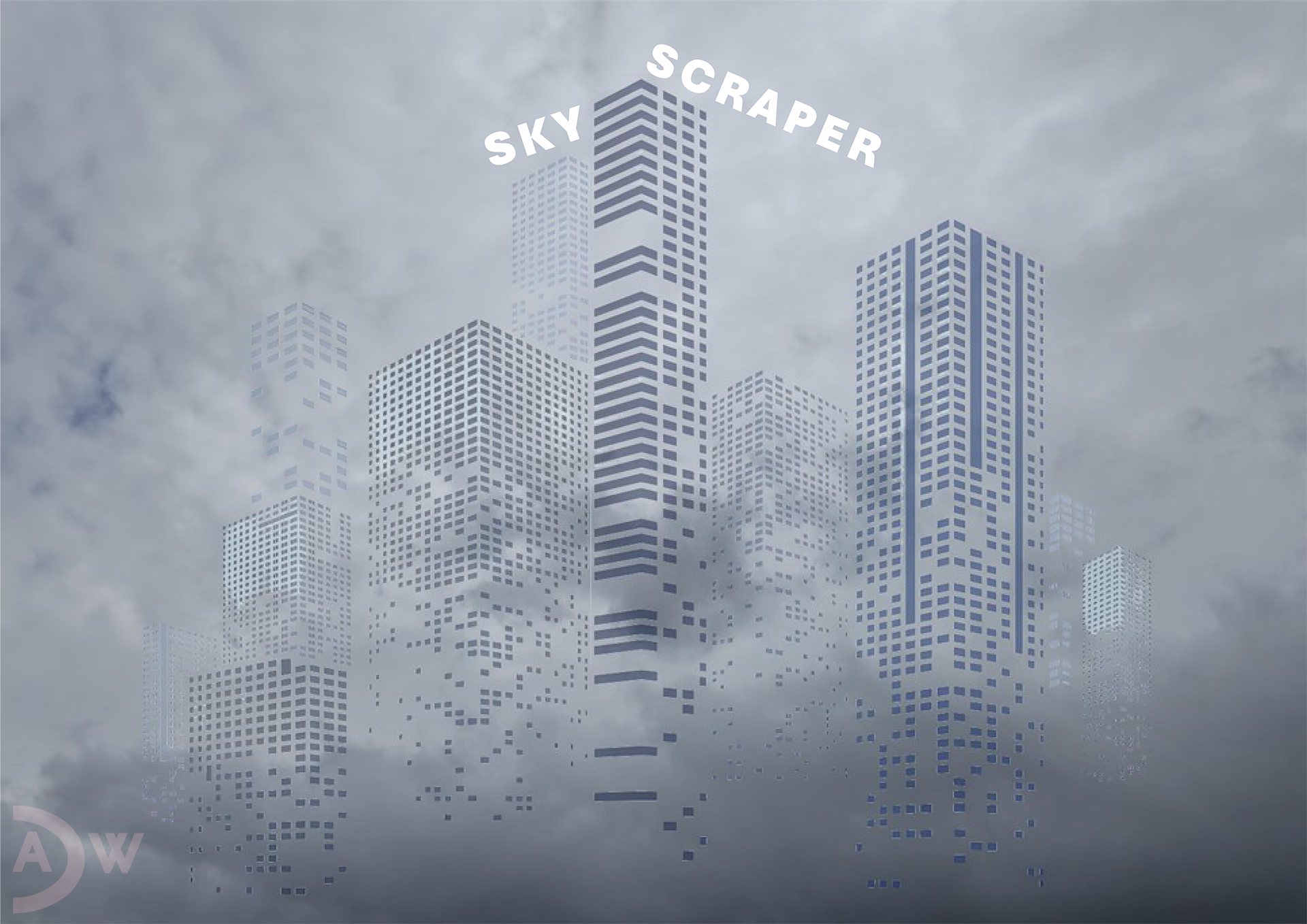 “Not as dangerous as the Skywalkers, but also in dizzying heights. Skyscrapers allow people to get closer to the sky and the clouds. A photo composition, with the impression of a female face between the two high-rise towers on the right created by the meeting of cloud formation and stylized windows.