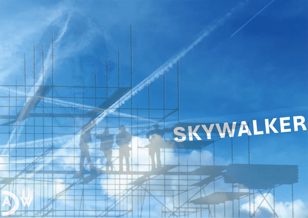 Arslohgo’s “Skywalker” creates a multilayered interplay of linguistic and visual registers that explores humanity’s precarious position between earthbound labor and transcendent longing. The title serves as a semantic nexus where the literal meaning of sky-walker—embodied by the scaffolding workers—intersects with the pop culture icon Luke Skywalker.