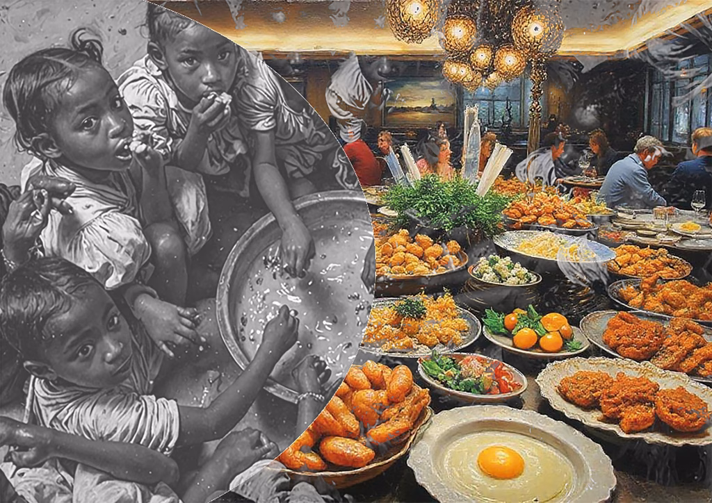 With unsettling clarity, Arslohgo’s “The Hunger Games—All U Can Eat” confronts us with one of the most uncomfortable truths of our time: the obscene maldistribution of food in a world of supposed abundance.