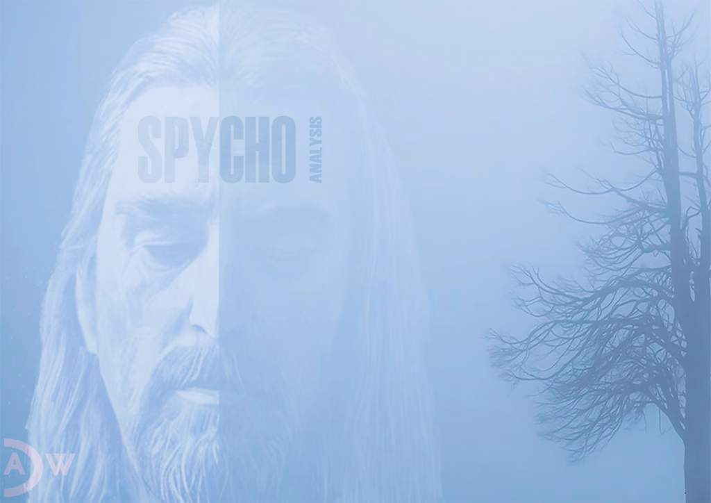 The typographic intervention proves particularly compelling. “SPYCHO” and “ANALYSIS” don’t function as explanatory captions but as integral visual elements that blur the boundary between text and image, between signifier and signified. Here, text becomes a visual symptom of the very splitting it thematizes.